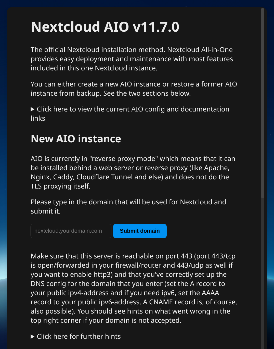 Puedes encontrar más información sobre Nextcloud AIO en su repositorio oficial de GitHub aquí. Por cierto, esta es la forma oficial de instalar Nextcloud.